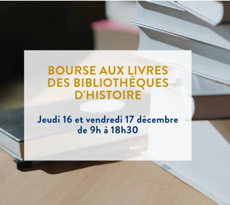 Atelier Image de couverture Du 16 décembre 2021au 17 décembre 2021 Bourse aux livres des bibliothèques d'Histoire Ajouter à mon calendrier